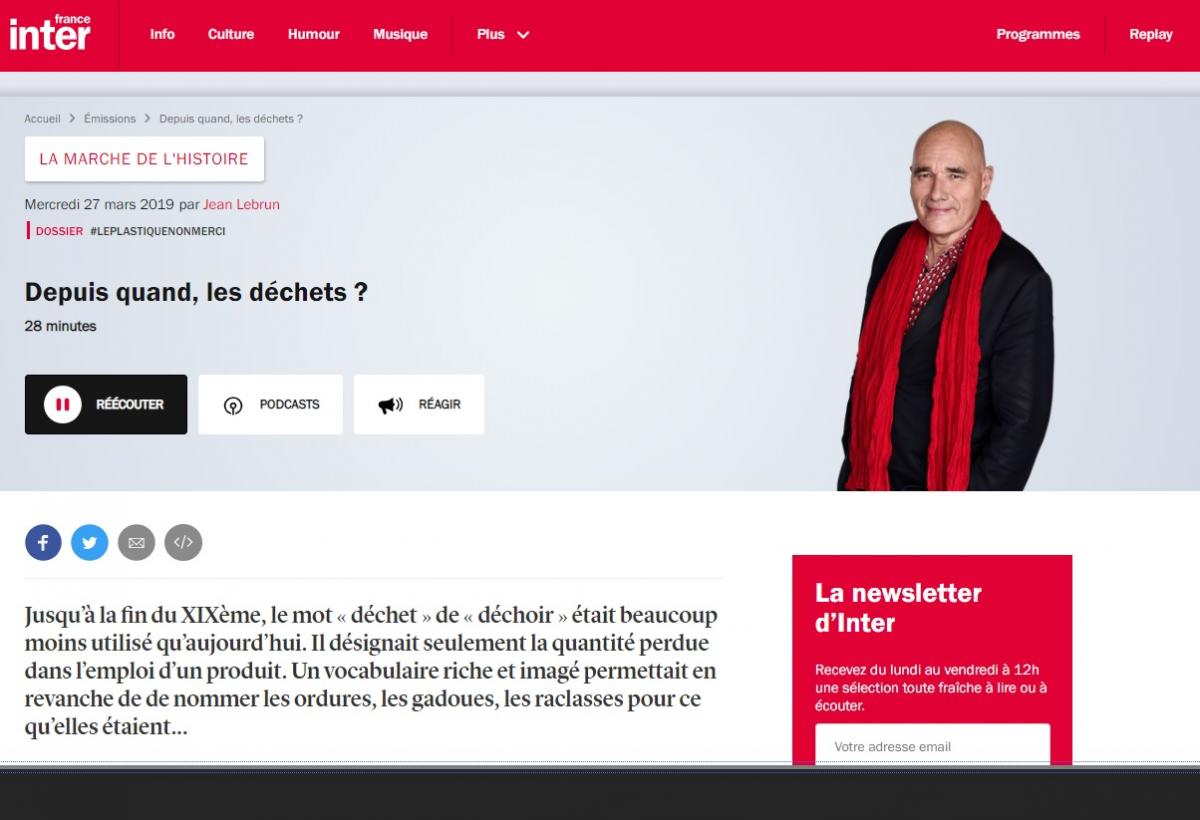 "Depuis quand, les déchets ?". C'était le titre de la célèbre émission "la Marche de l'Histoire" sur France Inter du 27 mars 2019, et dans laquelle la chercheuse en urbanisme et en prospectivisme Sabine Barles a été invitée.
