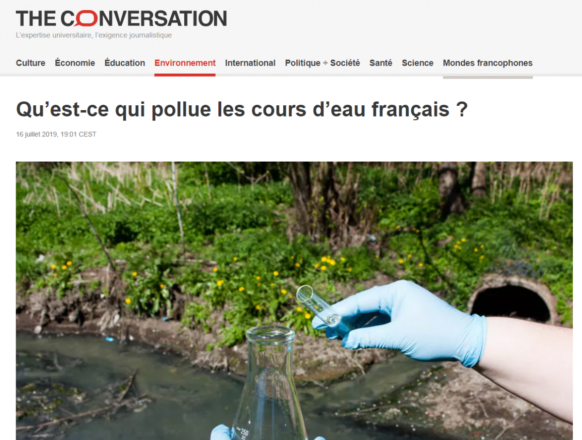 Hélène Blanchoud, maitre de conférences en chimie de l'environnement à Sorbonne Université et chercheuse au PIREN-Seine, a signé un article dans le media indépendant The Conversation, Qu’est-ce qui pollue les cours d’eau français ?