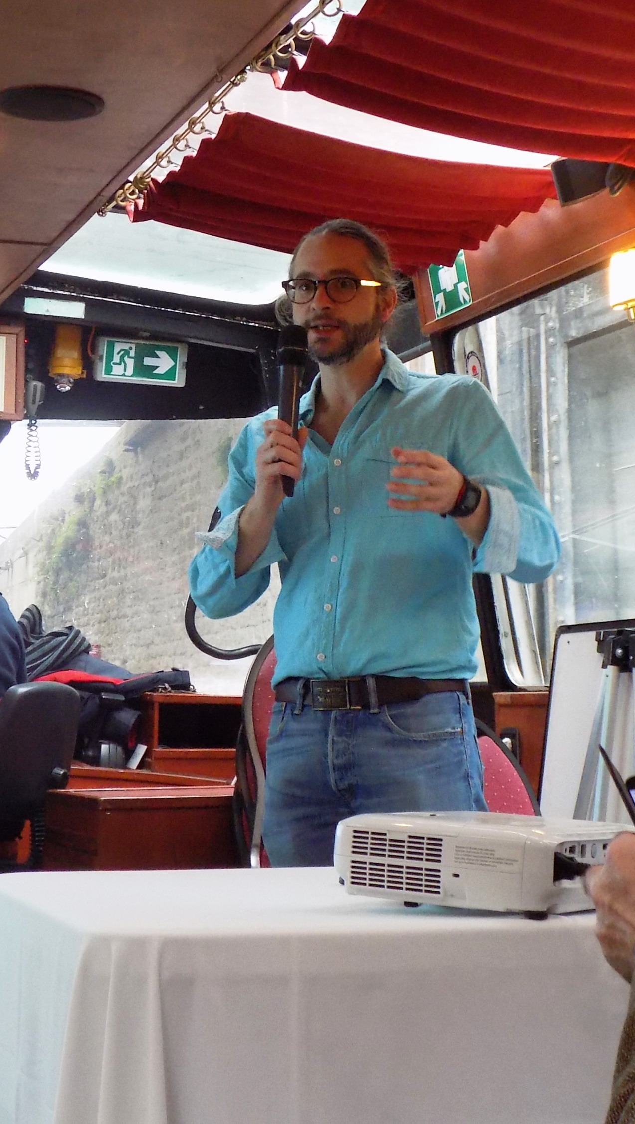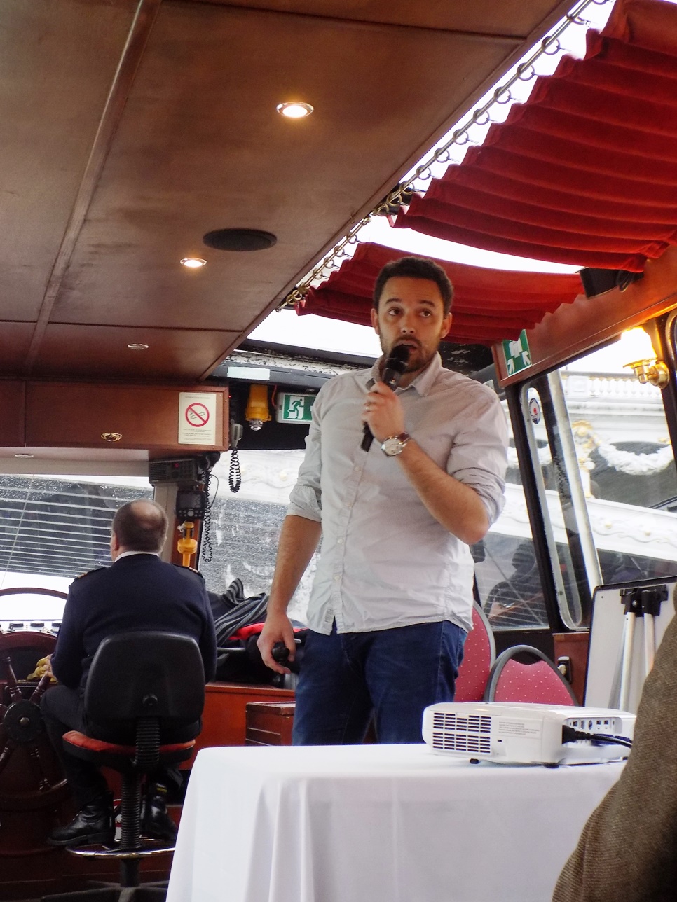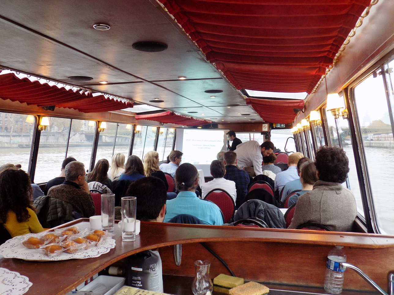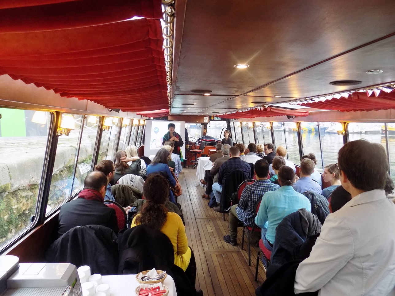 Pour marquer cet évènement, les présentations ont été tenues sur une péniche naviguant sur la Seine. Entre deux monuments parisiens, du canal Saint Martin à la Tour Effel, les convives ont ainsi assisté à cinq présentations, qui avaient pour objectif de faire connaitre certains programmes et organismes de recherche en environnement sur le bassin de la Seine.