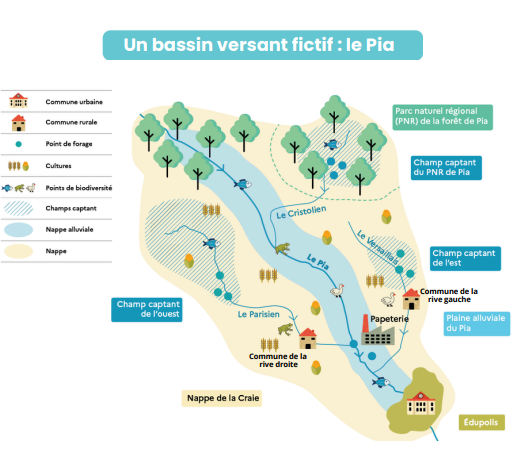 Ce partenariat a abouti à la création d’un jeu de rôle, à destination des élèves de collèges et de lycées. À travers une simulation d’une commission locale de l’eau (CLE), les élèves ont l’occasion de se confronter à la complexité de la gestion de l’eau sous changement climatique, des enjeux politiques et économiques et les conflits d’usages qui y sont liés.