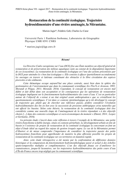 Restauration de la continuité écologique. Trajectoire hydrosédimentaire d'une rivière aménagée, la Mérantaise