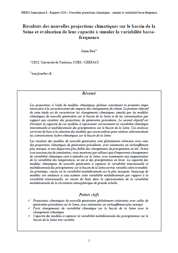 Résultats des nouvelles projections climatiques sur le bassin de la Seine et évaluation de leur capacité à simuler la variabilité basse-fréquence