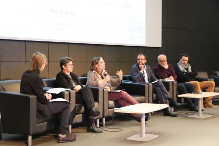 La première table ronde était composée de représentants de partenaires scientifiques du PIREN-Seine : CNRS, ZA Seine, MOCOPEE, OPUR et GIP Seine-Aval. Les intervenants sont revenus sur la singularité et la complémentarité des programmes, ainsi que sur l’importance des projets qui fédèrent les différentes approches pour caractériser le continuum Homme-Terre-Mer. La modélisation, le suivi du milieu et la construction de scénarios à l’échelle du bassin sont autant de domaines qui poussent à la mise en place de projets communs, permettant la mutualisation des méthodes et des outils. Le PIREN-Seine, du fait de son échelle et de son champ d’expérimentation, apparaît ainsi comme un chaînon central de ce maillage scientifique du bassin.