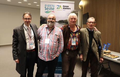 Ces derniers ont livré leur regard rétrospectif sur la fondation et l’histoire du PIREN-Seine, avant de laisser la parole à leurs homologues actuels, Nicolas Flipo, Directeur du PIREN-Seine, et Benoît Lesaffre, Président du comité des partenaires, introduisant la première table ronde. Ce colloque fut ainsi l’occasion de réunir tous les directeurs successifs du PIREN-Seine pour un cliché historique.