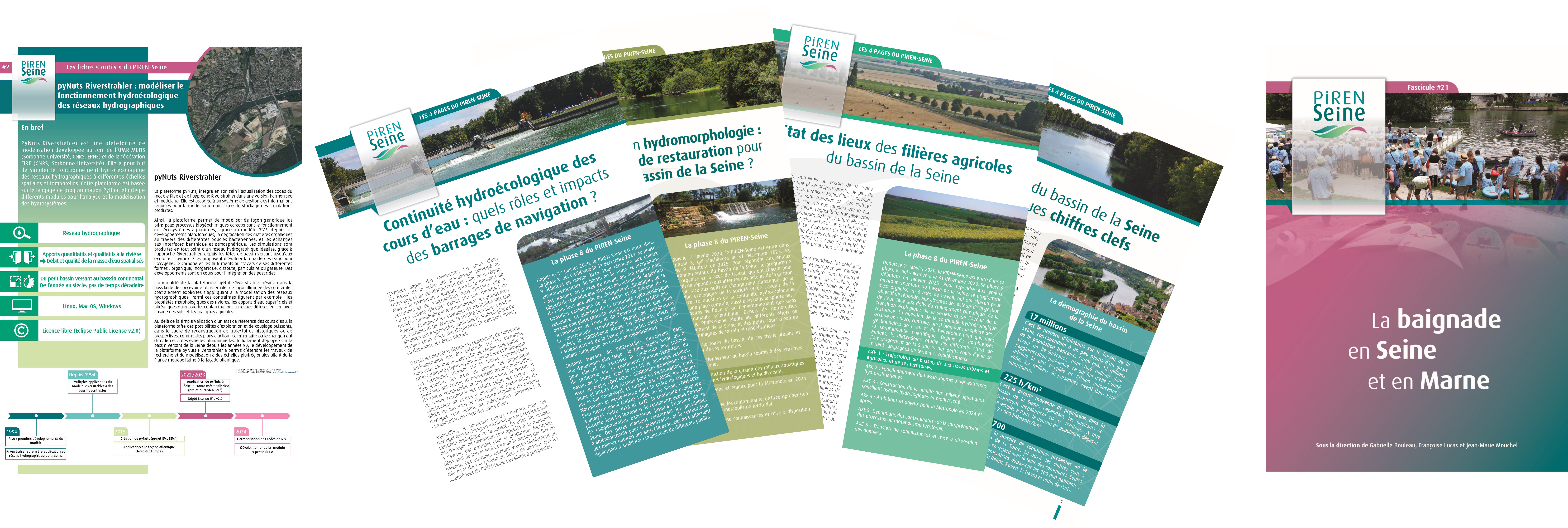 Cette année encore, les derniers documents édités par la cellule « transfert des connaissances » étaient tous disponibles en format papier. Les participants ont ainsi pu découvrir les quatre dernières fiches synthétiques « 4 pages », consacrées respectivement à l'impact des barrages de navigation sur la continuité hydroécologique, les dernières recherches en hydromorphologie et leurs implications sur la restauration écologique, un état des lieux des filières agricoles dans le bassin de la Seine, à la ZTHA de Rampillon, et enfin une réédition actualisée de la fiche "Hydrologie du bassin de la Seine en quelques chiffres clefs". Une nouvelle "Fiches outils" portant sur le modèle pyNuts-Riverstrahler a également été publiée sur le site web. Et enfin, le fascicule "Baignade en Seine et en Marne", fruit d'une forte collaboration entre de nombreux acteurs et chercheurs a été mis à disposition des participants au colloque en version papier, mais aussi en version numérique.