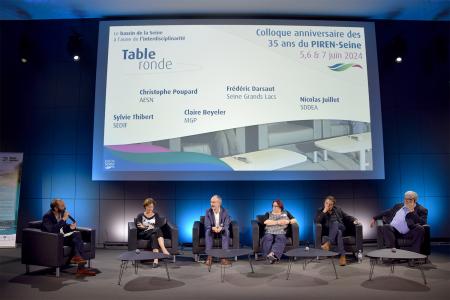 Cette session introductive étant placée sous le thème des « du bassin de la Seine à l'aune de l'interdisciplinarité », une table ronde dédiée spécialement à l'apport de la recherche interdisciplinaire à la gestion de l'eau a été organisée. Ce moment d'échange à permis à chacun des participants de mettre en avant un résultat phare de la recherche interdisciplinaire pour une meilleure compréhension du socioécosystème, de la gestion de la ressource en eau et des écosystèmes aquatiques. Elle a été aussi l'occasion de réfléchir à ce qu'elle pourrait devenir dans le futur, notamment avec la phase 9 du PIREN-Seine qui débutera au 1er janvier 2025.